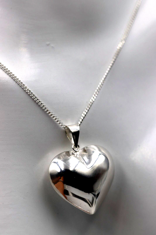 Genuine Sterling Silver 925 Medium Puffy Bubble Heart Pendant + Necklace Chain