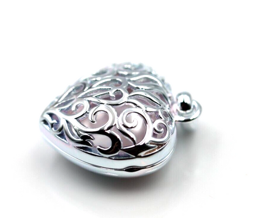 Genuine Sterling Silver 925 Heavy Filigree Heart Locket Pendant