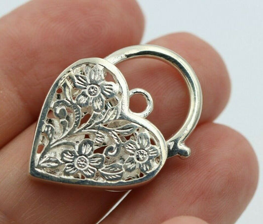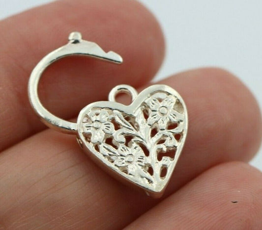 Large Sterling Silver Filigree Flat Heart Padlock Pendant 20mm