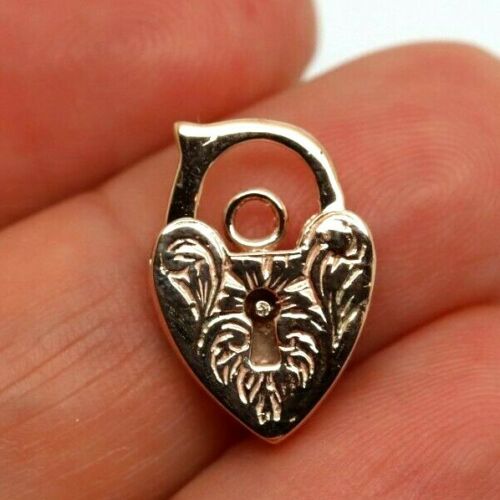 Genuine Small Sterling Silver 925 or 9ct Yellow Gold 14mm x 8mm Heart Padlock & Key