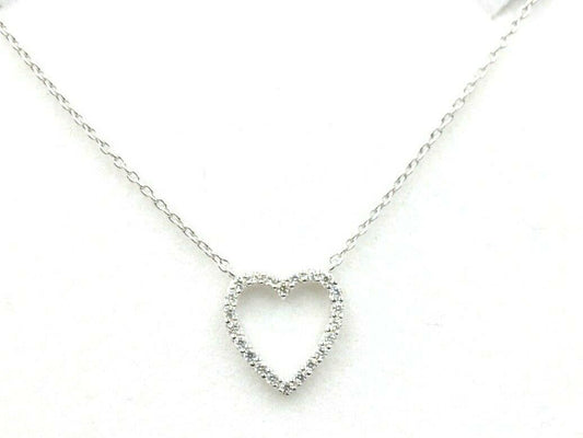 Sterling Silver Cubic Zirconia Open Heart Pendant + Chain Necklace