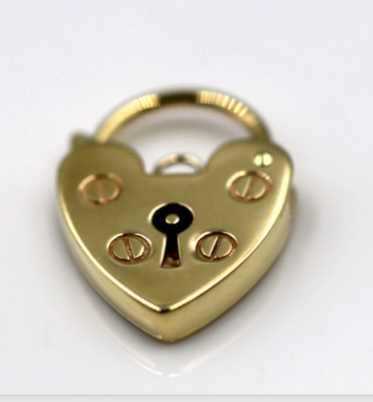 Genuine New 15mm 9ct Yellow, Rose or White Gold Plain Heart Pendant Padlock