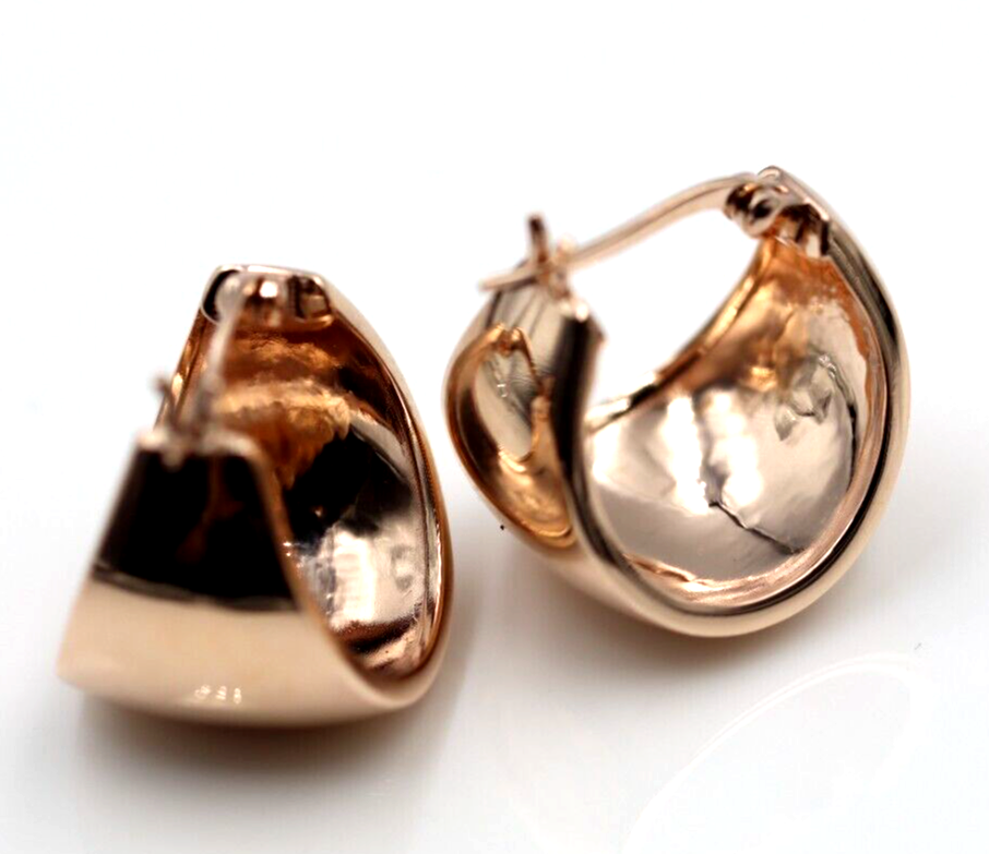 Genuine Heavy 9ct 9K 375 15mm Wide Yellow, Rose or White Gold Hoop Full Solid Earrings