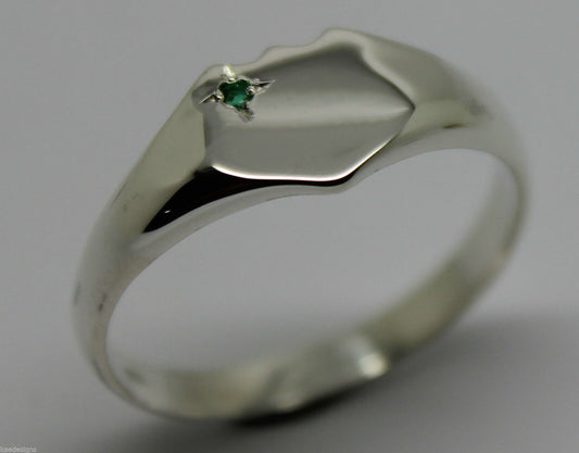 Size R Solid Genuine Large Mens Sterling Silver Shield Green Emerald Signet Ring