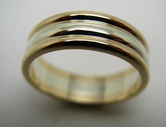 Genuine Full Solid 9ct White & Yellow Gold Heavy Band Ring Size X