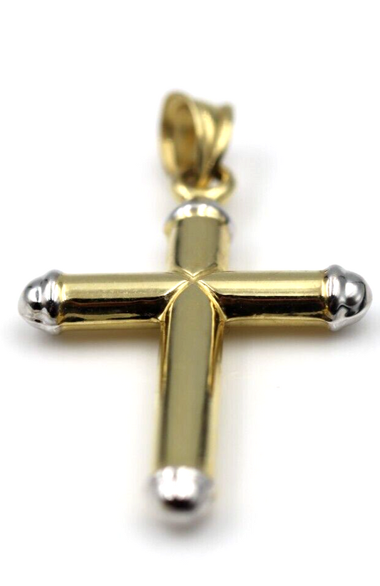 Genuine Hollow 14ct 14K Yellow + White Gold Cross Pendant - Free express post oz