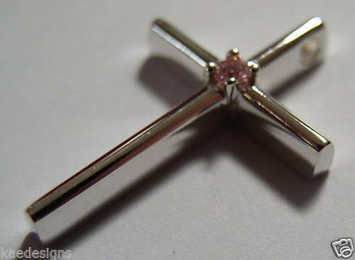 Genuine Sterling Silver Cross Pink Sapphire Pendant