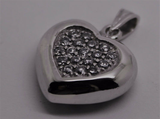 Genuine New 9ct 9k White Gold Cubic Zirconia Pave Heart Pendant *Free Express Post In Oz*