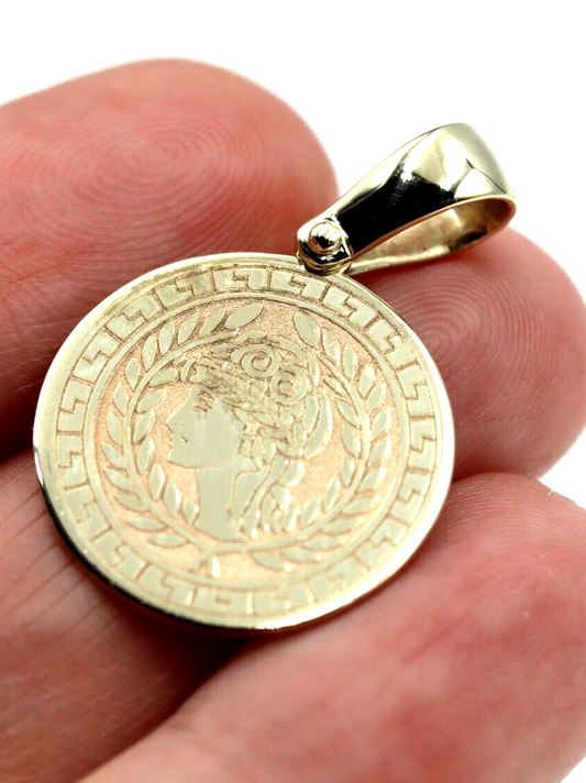 Genuine 9ct Yellow, Rose or White Gold Athena Goddess of Wisdom + War Shield Pendant Or Charm