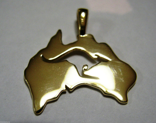 Genuine 9ct Yellow Gold Or White Gold Or Rose Gold 375 Australia & Kangaroo Pendant 422