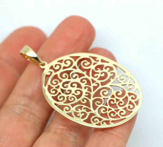 Heavy Solid 9ct Yellow, Rose or White Gold Large Oval Filigree Pendant