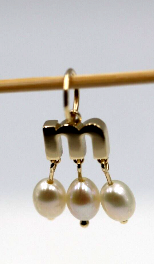 Kaedesigns Genuine 9ct 9kt Yellow, Rose or White Gold Initial Pendant / Charm M + 3 x Pearls