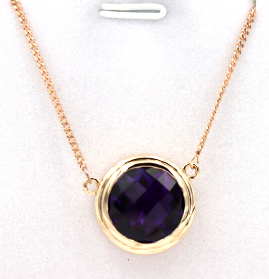 Genuine 9ct 9k Rose Gold Kerb Curb Chain Necklace & Amethyst Pendant