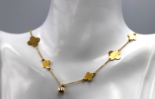 Genuine 14ct 585 Yellow Gold 4 Leaf Clover Necklace 46cm long- Free post