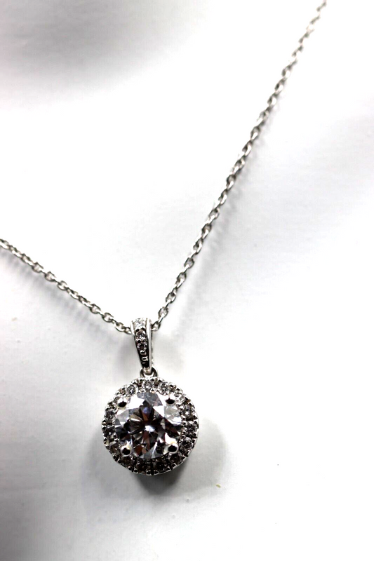 Genuine 9ct 375 White Gold 1ct Lab-Created Diamond Pendant + Chain -Free Post