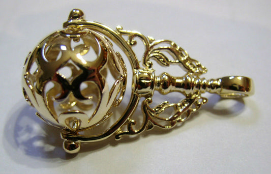 Genuine Extra Large 9ct 9kt Yellow, Rose Or White Gold Filigree Ball Filigree Spinner Pendant