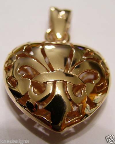 Kaedesigns Genuine New 9ct 9kt Yellow, Rose or White Gold Filigree Heart Pendant