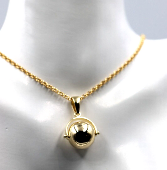 Genuine 9ct 9k Yellow Gold 65cm Cable Necklace Chain + Spinner Pendant