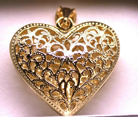Kaedesigns, Genuine 9ct 9k Huge Large Yellow, Rose or White Gold Filigree Heart Pendant