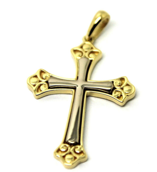 Genuine 18ct 18kt 750 Yellow & White Gold Two Tone Byzantine Cross Pendant 521