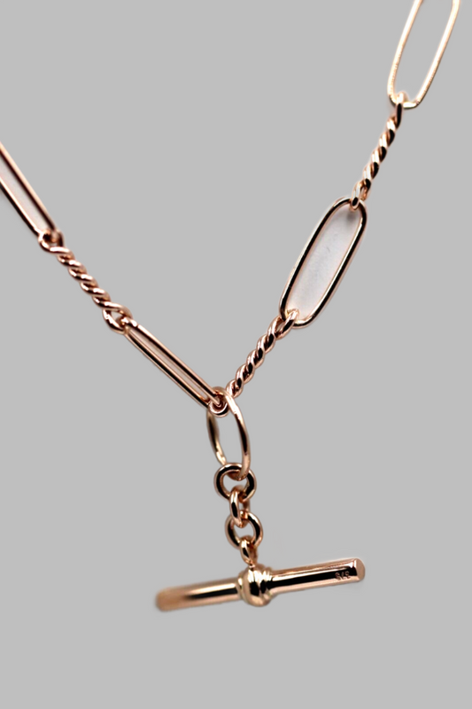 Genuine New Handmade PaperClip 9ct Yellow, Rose or White Gold Paper Clip Chain Necklace with T-Bar