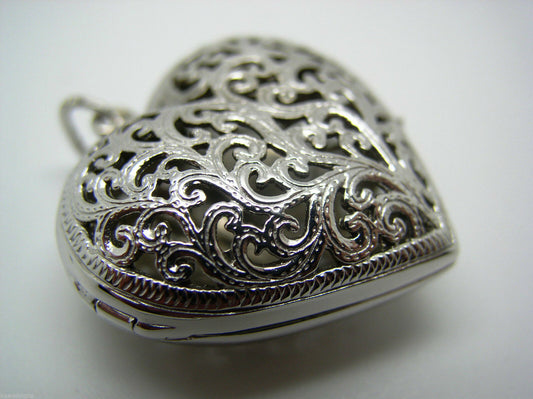 Kaedesigns Genuine 9ct 9K White Gold Huge Heavy Filigree Heart Pendant Locket