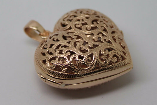 Kaedesigns, New Genuine 9ct 9kt Rose Gold Huge Filigree Heart Pendant Locket