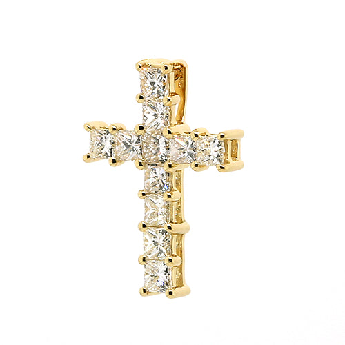 0.50cts New Genuine 18ct 18k 750 Yellow Gold Princess Cut Diamond Cross Pendant