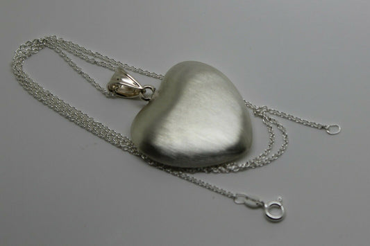 Genuine Sterling Silver Chain Necklace & Large Brushed Heart Pendant