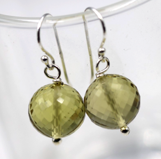 Sterling Silver 925 Natural Lemon Quartz Briolette Ball Hook Earrings