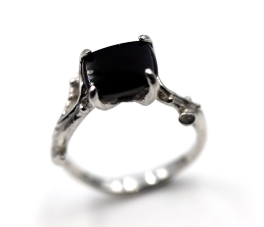 Genuine Size P Sterling Silver 925 Black Onyx Vine, Thorn Ring