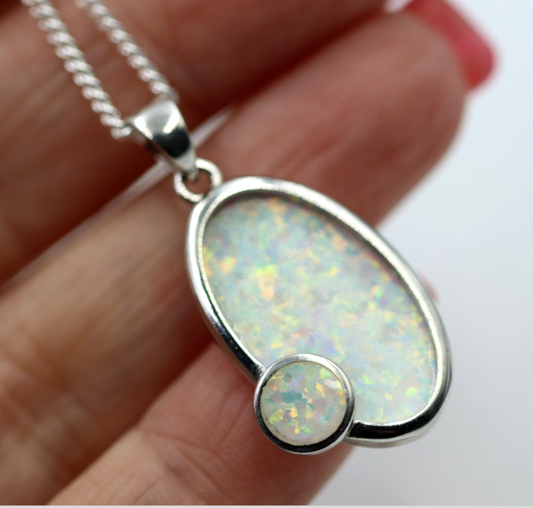 Sterling Silver 925 Oval Syn Opal Pendant + 50cm Necklace