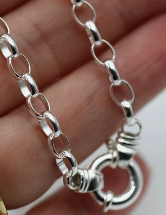 Kaedesigns 925 Sterling Silver Belcher bracelet with Bolt Ring 20cm