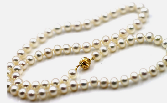 Genuine 14ct Yellow Gold Freshwater 6.5mm Pearl Necklace Chain 50cm