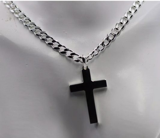 Genuine 925 Sterling Silver Kerb Curb Link 60cm Chain + Plain Cross + Engraving of 4 names