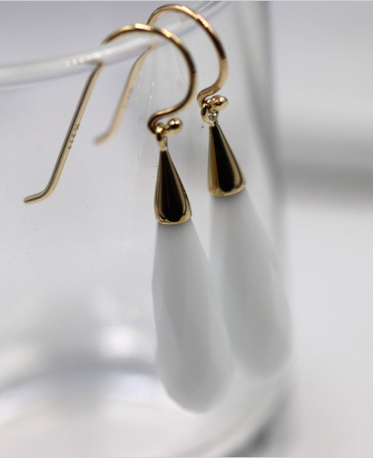 Genuine 9ct 9k 375 Briolette White Obsidian Drop Earwires Earrings