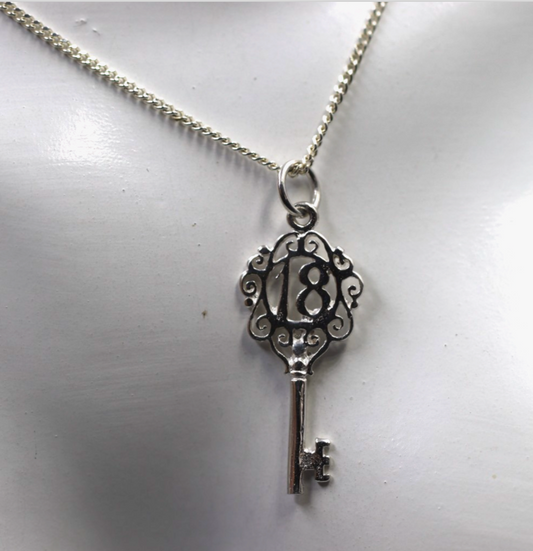 Sterling Silver 925 Small Fancy Key 18th Pendant Or Charm + Necklace