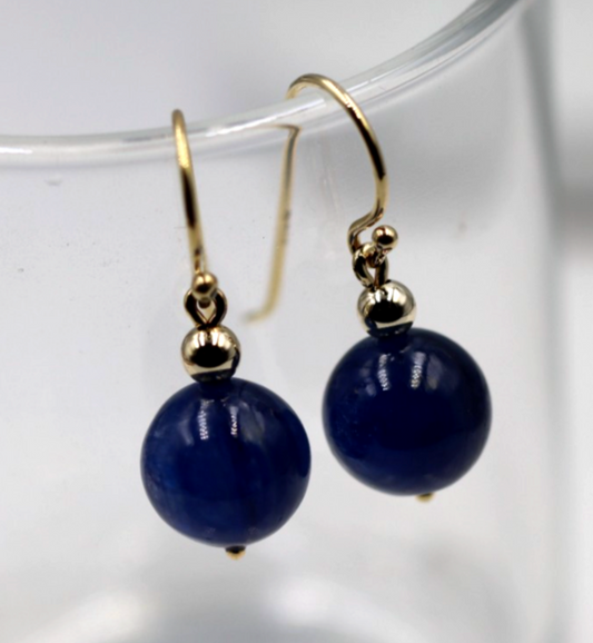 Genuine New 9ct 9k 375 Yellow Gold Blue Quartz Drop Ball Earrings