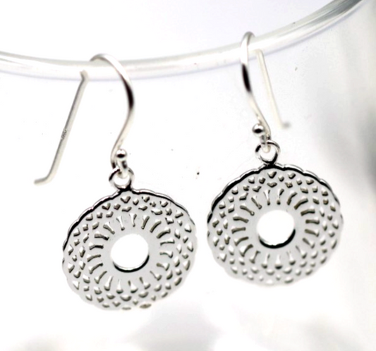 Genuine Sterling Silver 925 Patterned Circular Filigree Earrings