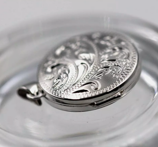 Sterling Silver 925 Engraved 20mm Round Pendant Locket