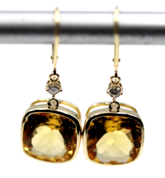 Genuine 9ct Yellow Gold 375 Diamond Cushion Cut Citrine Earrings