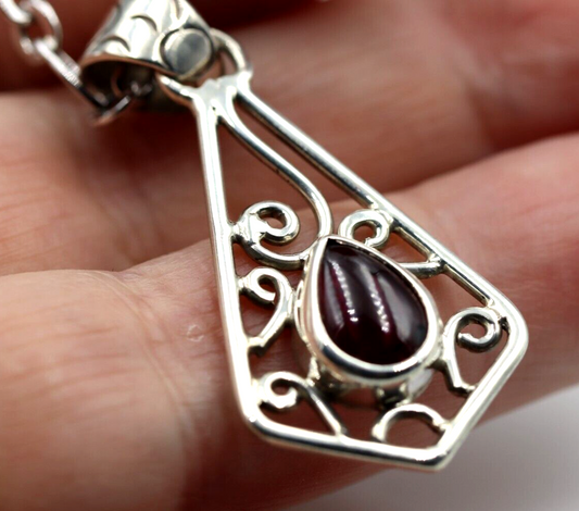 Sterling Silver 925 Cabochon Ruby Swirl Pendant + 55cm Chain/Necklace