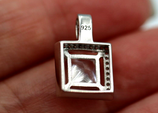 Genuine Cubic Zirconia 925 Sterling Silver Princess Cut Square Pendant Free Post