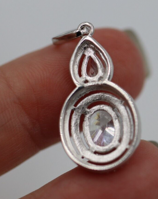 Genuine Cubic Zirconia 925 Sterling Silver Oval Fancy Pendant