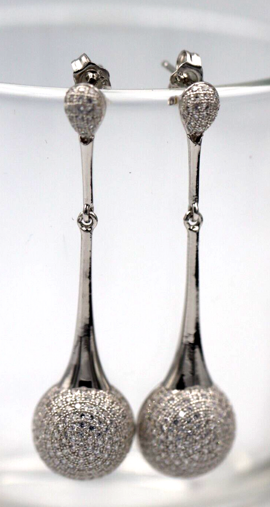 Genuine Sterling Silver 925 Cubic Zirconia Half Ball Stud Earrings