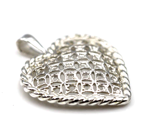 Genuine Sterling Silver or 9ct Yellow, Rose or White Gold Filigree Heart Rope Pendant