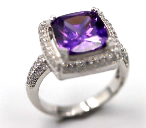 Size M Sterling Silver Purple Created Amethyst + Cubic Zirconia Ring
