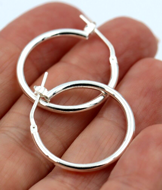 Genuine New Sterling Silver 925 Hoop Earrings Plain 20mm
