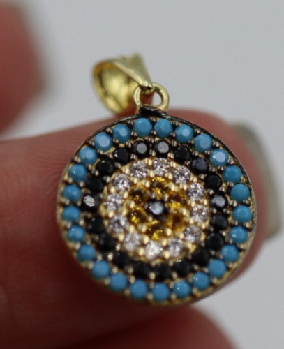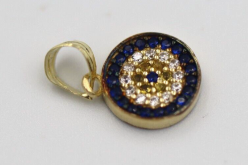 Genuine 14ct Yellow Gold Cubic Zirconia Greek Mati Round Evil Eye Turquoise Pendant