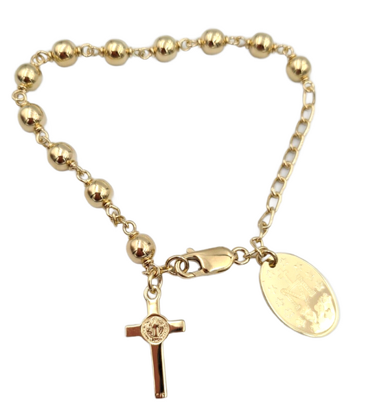 Genuine 9ct Yellow, Rose or White Gold 6mm Ball Rosary Bead Bracelet 21cm Long Mary Miraculous Pendant